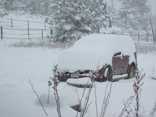 my first wildflowers a few days ago, we are having a huge snow storm in the Colorado Rocky Mountains. The mountains surrounding our horse farm have completely disappeared from sight and it's seems like the neighbors houses are going to be soon to follow. We're expecting a total accumulation of twenty to thirty four inches.